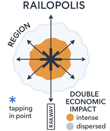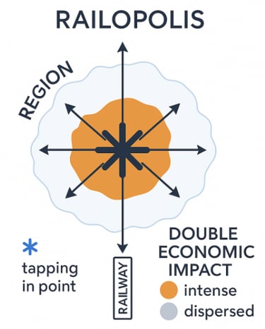 Railopolis is the phenomenon that occurs when a location taps directly into an arterial rail network, unleashing flows of goods and people into the surrounding region.